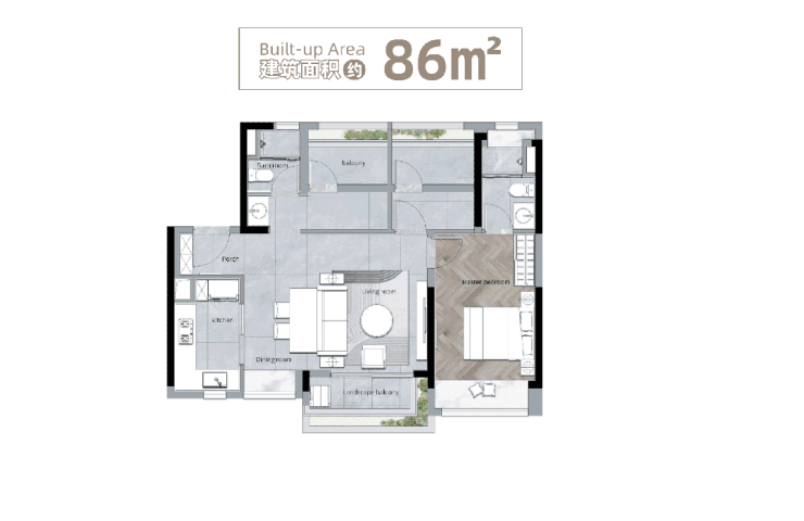 产品面积:86㎡、115㎡、135㎡、142㎡