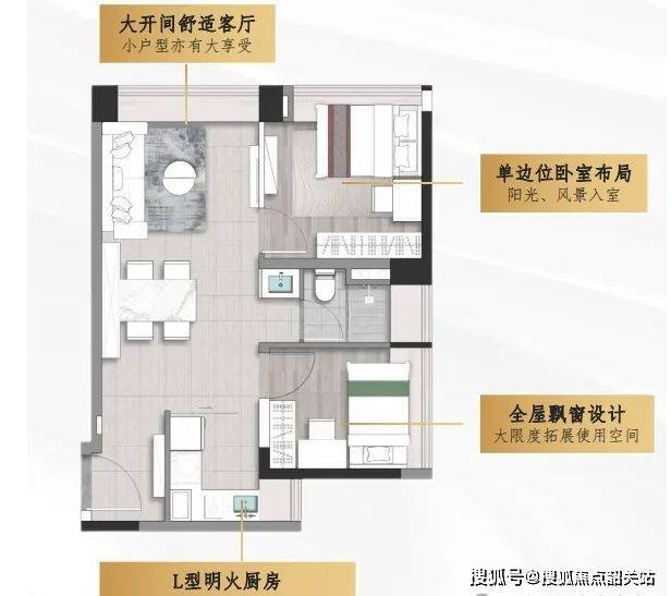 约 60㎡的生活米墅户型,空间更为宽敞,功能更加丰富。同样通燃气、可明火,为生活带来更多便利与品质。