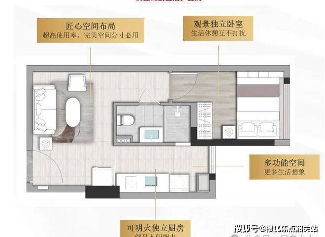 睡眠区域可利用阁楼设计,增加空间层次感与私密性。楼梯下方还可设置为收纳空间,放置杂物,让空间更加整洁有序。卫生间虽面积不大,但干湿分离的设计,提高了使用效率,保持空间干爽。对于单身人士或小情侣而言,这样的户型既能满足居住需求,又可作为小型工作室使用,宜商宜居,性价比极高。