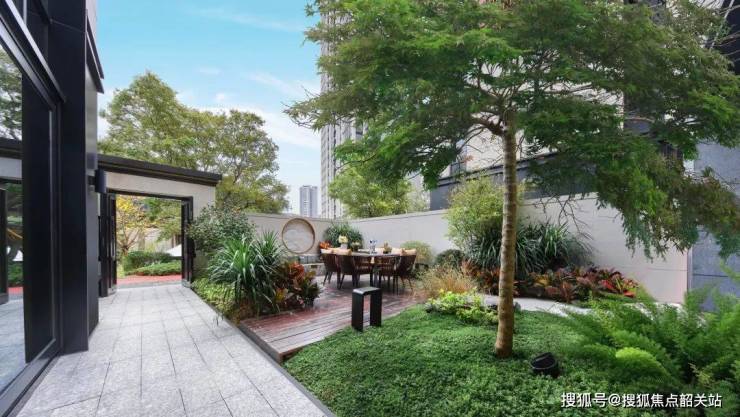 园林内植物,由设计团队从佛山、成都、重庆等各地找寻而来,对植物高度、胸径、冠幅等有严格标准,历时6个月,最终甄选了256种珍贵花木,全冠采购移植,通过不同植被搭配,勾勒生活美感。