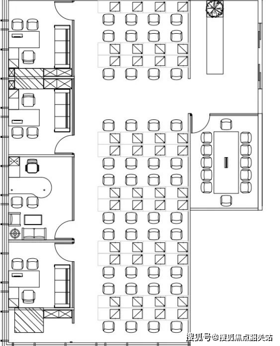 此外,该户型的灵活性也值得称道。5个间隔的大小与位置可以根据企业的实际需求进行微调,开放式办公区的工位数量也可以根据团队规模进行增减。这种灵活多变的空间特性,使得该户型能够适应企业不同发展阶段的需求。无论是快速扩张期的团队扩充,还是业务调整期的空间重组,都能轻松应对,无需进行大规模的拆改。