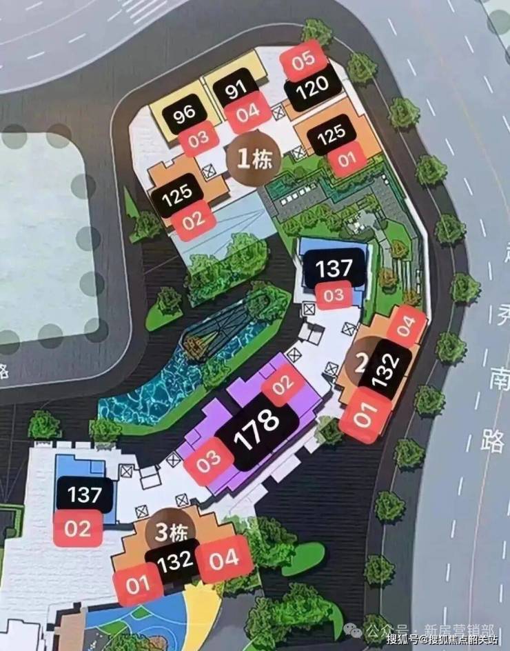 3#的位置比较往里面,比1和2栋都要好,一共有三个户型,以大面积为主,分别是132平四房,137平三房和178平四房
