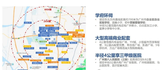 项目最核心的环境优势是 “紧邻白云湖”—— 距白云湖公园东门仅 100 米,白云湖作为广州大型生态公园,是周末露营、野餐、散步的绝佳去处,日常可享受高负氧离子的清新空气,生态宜居属性突出。医疗方面,小区半径 2 公里内有广州广安医院、广州和谐医院、马达医院等,满足日常就医需求;6.6 公里处有三甲医院广州市第八人民医院,为家人健康提供更坚实的保障。此外,项目周边虽处于发展阶段,但未来随着产业落地与配套升级,城市界面将持续优化,在享受当下生态红利的同时,还能把握长期发展潜力。