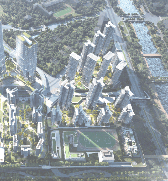 全国首个CBD+TOD+POD综合体:集国际社区、5A超甲级写字楼、花园办公、高端街区、教育配套于一体,以近百万方综合体大城构建一体化城市核心,融入一江两岸城市体系。