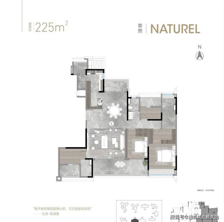 先来看看225的户型,南北对流双阳台+阳台极致面宽观景体验
