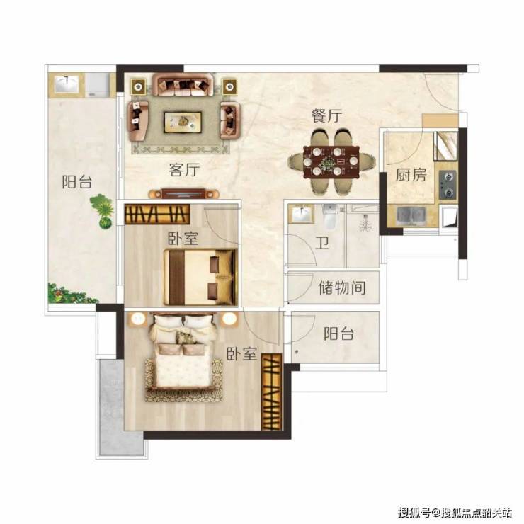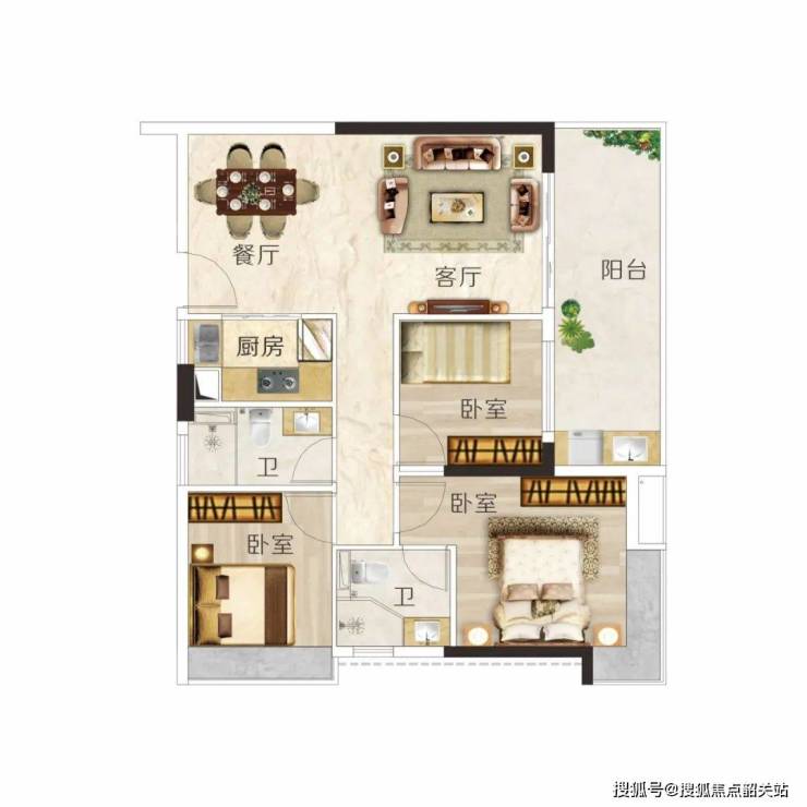 建面约92平方米 3房2厅2卫:布局合理,主卧带转角飘窗。