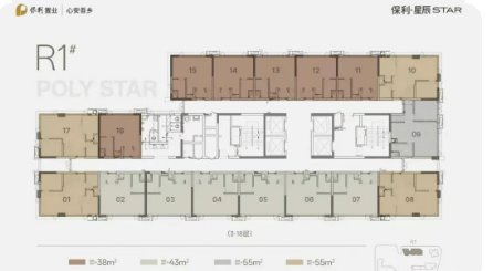 建筑细节:公寓 N3# 共 21 层,R1# 18 层(一层为商铺,二层是泛会所),均为 4.5 米复式,买一层送一层的设计极具吸引力。物业管理由广州保利城物业管理有限公司负责,住宅管理费 3.94 元 / 月 /㎡,公寓管理费 5.5 元 / 月 /㎡。开发商为广州东灏房地产开发有限公司(保利置业),梯户比为 3 梯 16 户,容积率 3.94,绿化率 38%,停车位 1050 个,车位配比 1:0.7 。