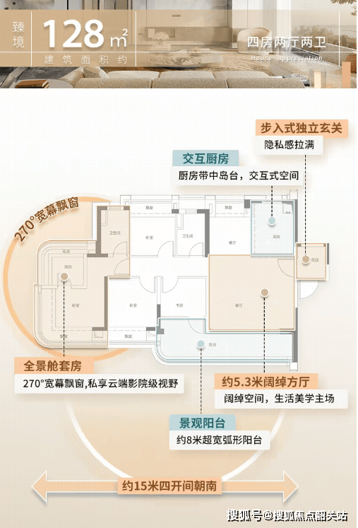(2)建面约128㎡四房:舒适改善,景观优越