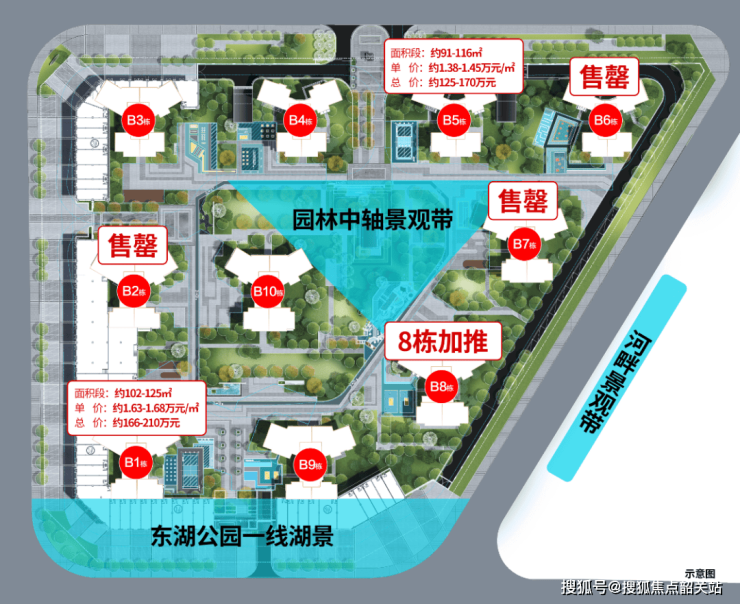 ◆南临地标级市政公园--东湖公园,坐拥南向一线湖景,私享约3万㎡活水大湖,约300米湖景线,约1.3公里观湖绿道。