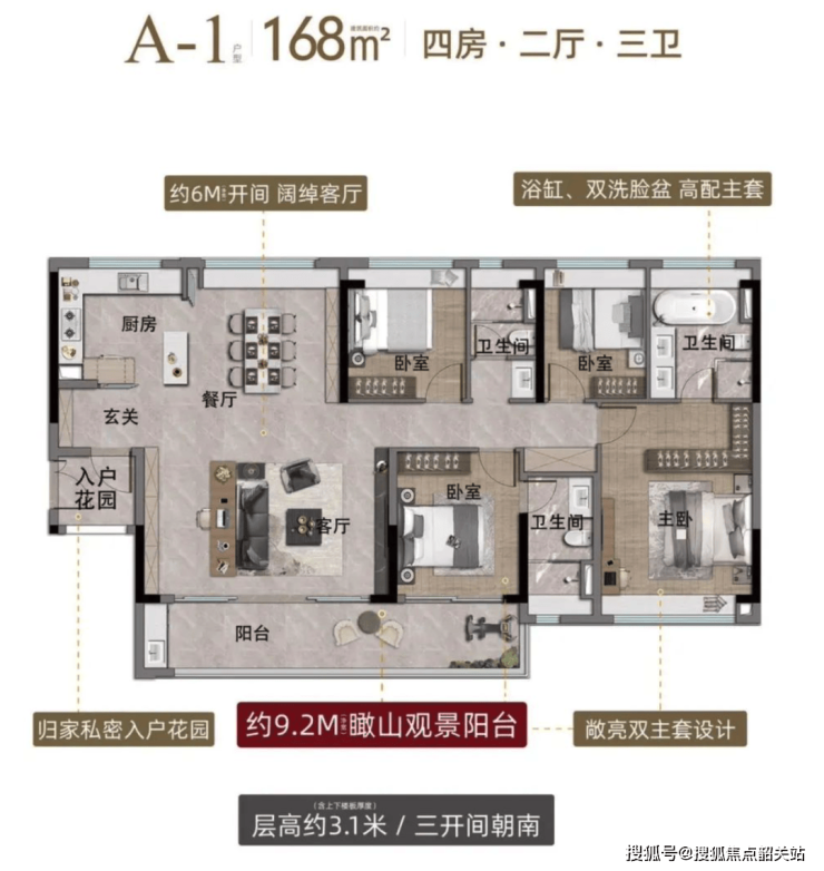主力户型为建面约 97 - 168㎡的三至四房,均南向设计并配备大阳台,采光通风俱佳,是改善型家庭的理想之选。97㎡三房设计精巧,阔开间与宽景阳台营造舒适空间;118㎡四房的入户花园与中西厨房设计,增添生活情趣;142㎡四房的阔境阳台与央座园林景观相得益彰;168㎡四房的阔绰客厅与双主套设计,尽显奢华品质。各户型动静分区合理,空间灵动实用,充分满足改善型购房者对居住品质的追求。