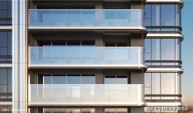 公建立面:公建化曲线流体设计、无柱转角弧形窗、铝板全景玻璃光幕,270°环幕视野媲美鹏瑞一号。