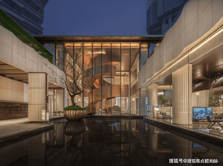 度假园林:打造立体都会度假式园林,酒店式落客、下沉式高定艺术空间、约7000 ㎡中庭会客花园等。