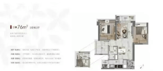 新世界天馥的产品力,首先体现在其精准切中改善型需求的户型矩阵上。项目仅设6栋,却精心打磨出从76㎡到139㎡共9种户型,覆盖刚需上车、三口之家、多代同堂等全生命周期需求。其中,建面约76-89㎡的三房产品被誉为“爆款”,通过极致空间优化,实现三房两卫+U型厨房+大阳台布局,得房率高达95%,远超市场平均80%水平;98-107㎡四房则主打“性价比之王”,四开间朝南、LDK一体化设计,满足二胎家庭功能与舒适双重升级;而126-139㎡江景大平层更是亮点,270°全景落地窗直面珠江后航道,主卧套房带独立衣帽间与卫浴,彰显塔尖生活格调。所有户型均采用3米层高,搭配明厨明卫、动静分区、全屋飘窗等细节,既保证实用性,又提升居住尊感。在当前市场普遍压缩公摊、牺牲体验的背景下,新世界天馥以“高使用率+人性化动线”重新定义中心城区好房子标准。