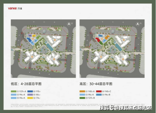 低区(4–28层):2梯6户,主打74–129㎡中小户型;
