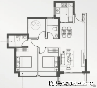 这款户型格局与80㎡户型相近,但核心优势在于南向朝向。南向户型通风和采光更佳,居住舒适度大幅提升。更重要的是,它配备了双卫生间设计,避免了家庭日常使用拥挤的问题,尤其适合有老人的三口之家或二胎家庭。双卫设计不仅提升了生活的便利性,也增强了居住的私密性。这款户型在保持紧凑实用的同时,兼顾了舒适度和功能性,是刚需家庭升级换代的优选。