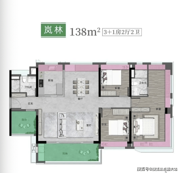 约135㎡改善四房:拥有更阔绰的客厅面宽与主卧套房,提供更优的居住尺度与舒适度,满足品质改善需求。