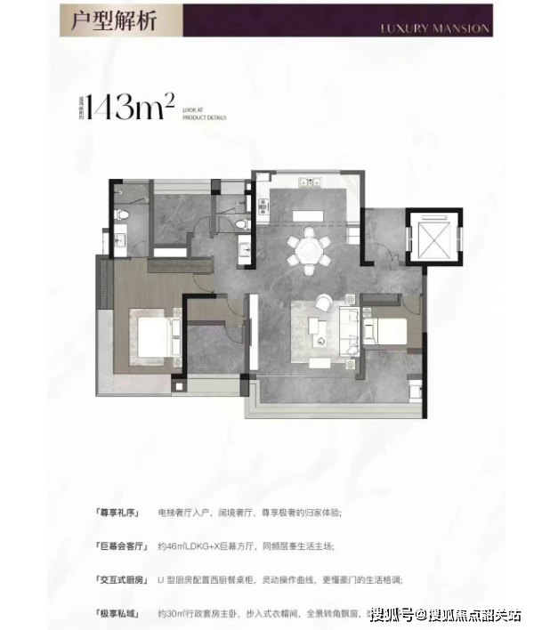 以建面约143㎡的大四房户型为例,采用LDKB一体化大方厅设计,搭配约5.9米的景观阳台,空间开阔通透,不仅提升了空间的利用率,更增强了家庭成员之间的互动性,无论是家人聚餐还是朋友聚会,都能轻松容纳。主卧面积宽敞,配备独立卫生间和衣帽间,私密性极佳,让业主能享受专属的静谧空间;次卧空间充足,可根据需求打造为儿童房、老人房或书房,灵活满足家庭不同阶段的需求。而建面约170㎡的大平层,则更是极致奢居的代表,空间尺度更大,配置更完善,满足终极改善家庭的居住需求,彰显业主的身份与格调。
