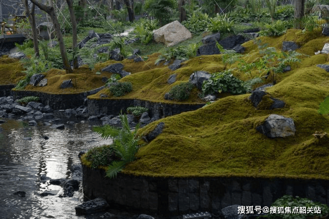 泮水而行·谧林溪语:通过堆砌石块形成“岸线”,散落的岛屿与涓涓流水,是对林间溪流的模拟再现,也会随着时间的流逝而自然生长,呈现唯美的自然野趣感。