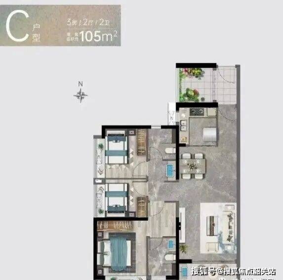 户型面积涵盖建面约85㎡2+1房两厅一卫,105㎡3+1房两厅两卫,118㎡3+1房两厅两卫。