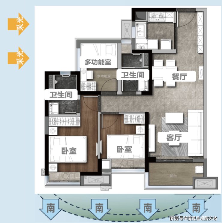 115方:三开间朝南南北对流,最受青睐户型