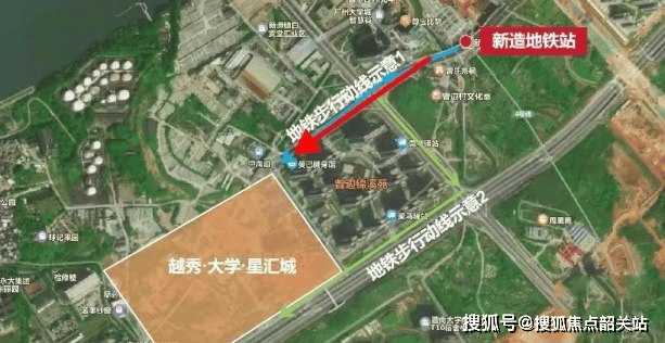 项目距地铁4号线新造站约1.6公里,未来随着广医南路的开通,步行距离将缩短至不到1公里。驾车通过南大干线前往番禺万博CBD仅需10分钟,而到达琶洲和珠江新城也只需大约30分钟,显示出了该区域交通网络的便捷性和高效性。