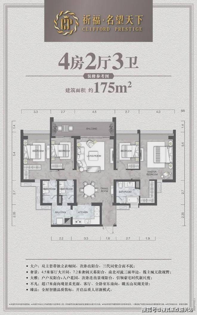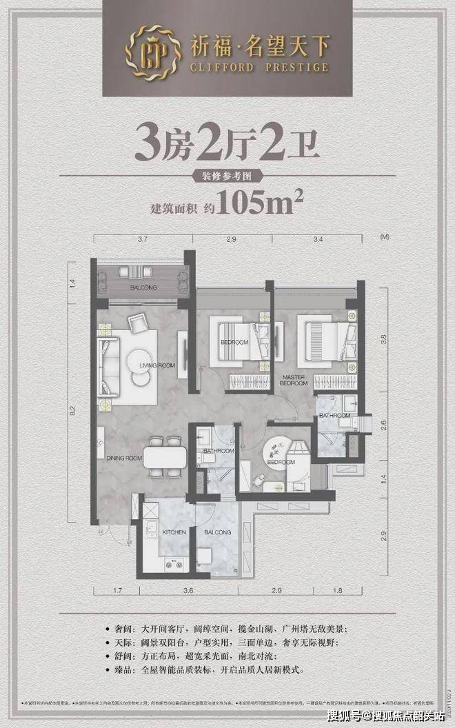 项目占地约 5 万㎡,179 米的超高层住宅刷新华南版块住宅天际线。点式布局与风车型设计,保证了每户的通风、采光和景观视野。户型面积 78 - 222㎡,涵盖多种户型选择。无论是从规模、建筑高度,还是从户型设计和配套设施来看,祈福・名望天下都以其卓越的品质,成为番禺区乃至整个湾区的优质楼盘代表。