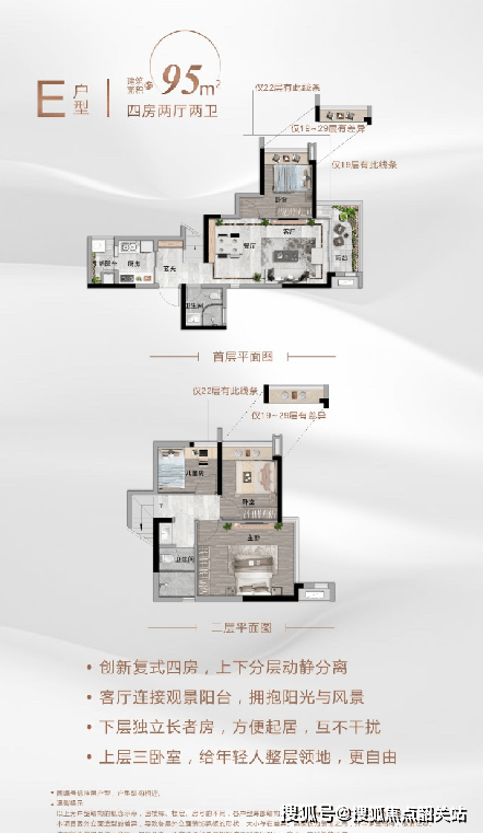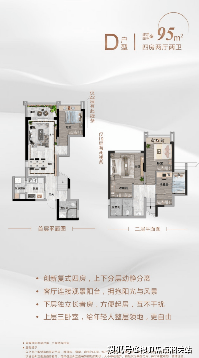 越秀星汇瀚府深度考量刚需及刚改人群的居住需求,在户型设计中融入诸多空间巧思,兼顾实用性与居住格调,依托100%使用率、复式创新设计等优势,让业主以高性价比享受高品质居住体验,彰显国企楼盘的匠心打造,这也是项目核心竞争力之一。项目建面约95㎡复式四房是佛山首创咬合复式设计,逢加推即售爆,100%使用率,全能四房设计,可实现三代同堂一步到位,性价比极高。复式上下分层布局,实现婆媳分区,减少生活摩擦,兼顾居住私密性与实用性;约6米层高让空间不压抑,灵活利用每一寸空间,满足家庭储物、休闲等多元需求。建面约110/118㎡平层四房,奢华南向设计,四房布局可适配三胎时代,一步到位,无需后期置换;户型空间阔绰,布局合理,兼顾实用性与格调,无论是日常居住还是家庭聚会,都能轻松承载。同时,项目作为高端豪宅系列,细节之处尽显用心,户型设计贴合现代家庭生活习惯,实现实用与格调的完美融合,让175万起的四房,也能拥有高品质的居住体验。