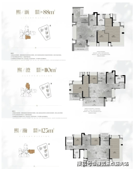 户型设计:小区户型以 88㎡、108㎡和 120㎡的三到四房为主,均朝南向,采光极佳。88㎡户型四开间朝南,主卧配备 270° 飘窗,视野开阔,充分享受阳光与美景。