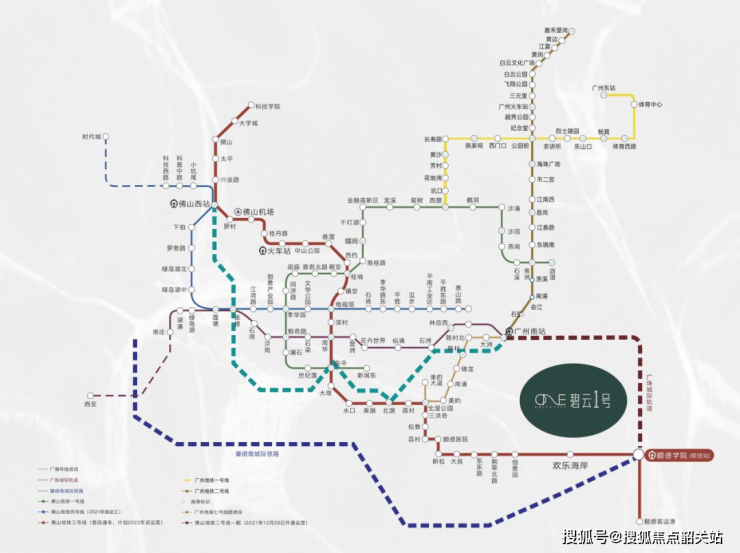 3条重要轨道路线:欢乐海岸地铁站(预计2022年运营通车)、广珠轻轨、肇顺南城际铁路。