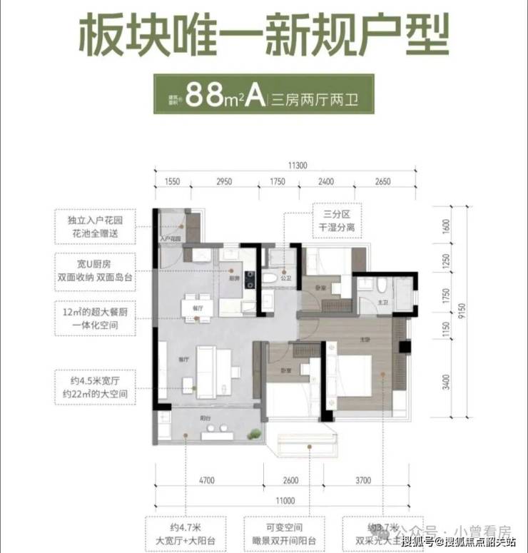 建面 88㎡三房两厅两卫:刚需改善,舒适升级