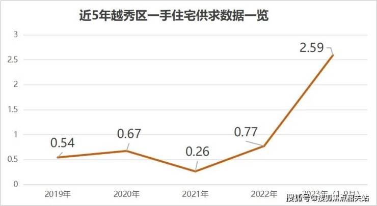 中指院数据显示,2019-2022年间,越秀区一手住宅供求比均低于1,甚至低至0.26。也就是说,约平均每1套房就有4个人争抢。